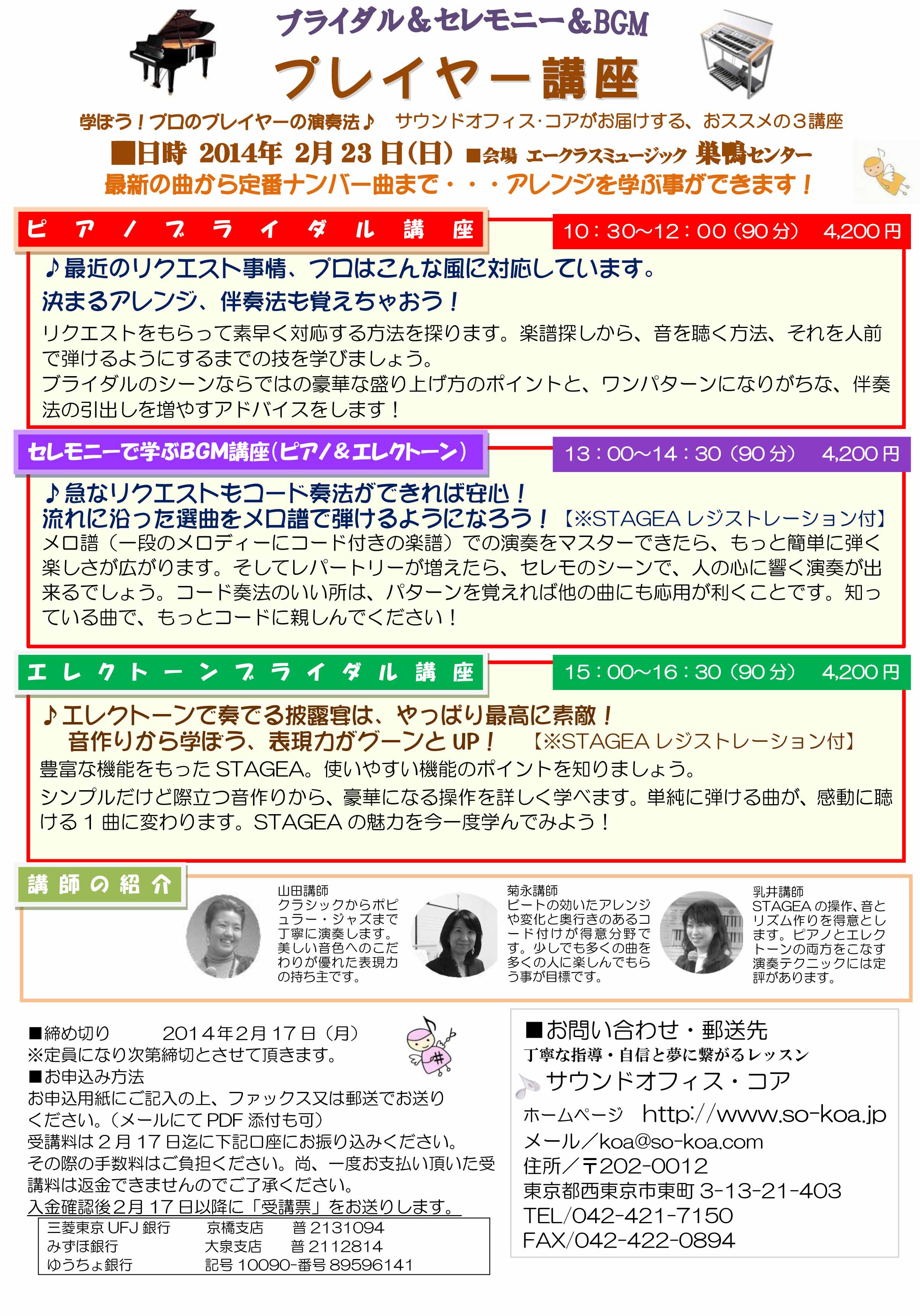 2014年2月23日(日) に行われるプレイヤー講座のお申込締切は2/17(月)です。