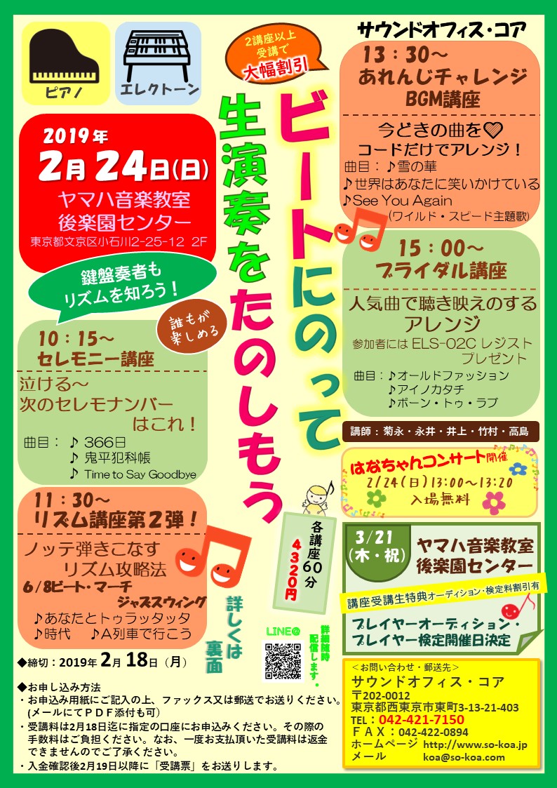 ヤマハ音楽教室後楽園センターで開催いたします