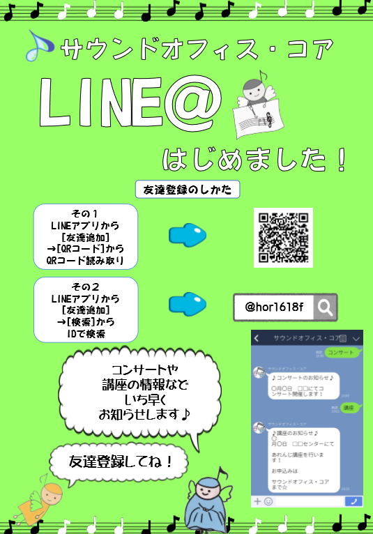 サウンドオフィス・コアの公式LINE@が出来ました。