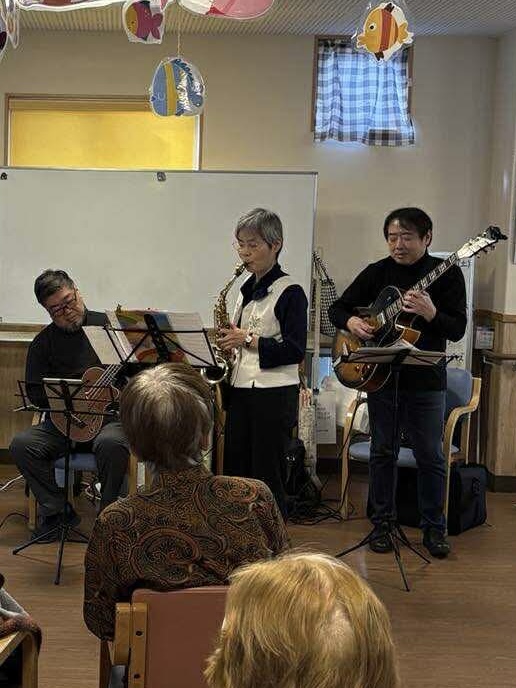 ②1月なかば、ボランティア演奏。