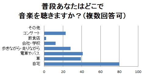 設問6 普段あなたはどこで音楽を聴きますか?(複数回答可)